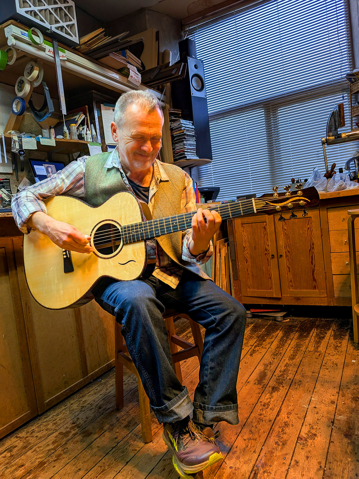 Martin playing the renovated and improved 2019 MS in my workshop.